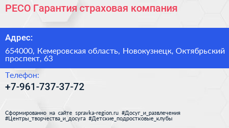 РЕСО-Гарантия, страховая компания по адресу 654000, Кемеровская область, Новокузнецк, Октябрьский проспект, 63 в дальнейшем Организация, размещена в следующих категориях:
