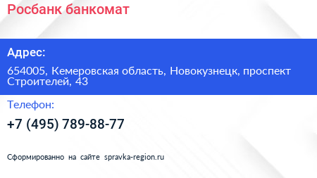 Росбанк, банкомат по адресу 654005, Кемеровская область, Новокузнецк, проспект Строителей, 43 в дальнейшем Организация, размещена в следующих категориях: