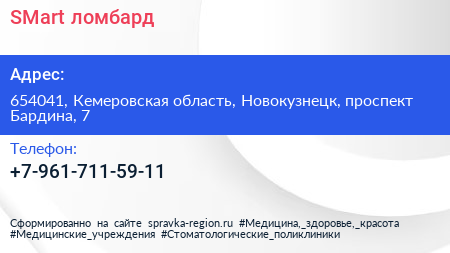 SMart, ломбард по адресу 654041, Кемеровская область, Новокузнецк, проспект Бардина, 7 в дальнейшем Организация, размещена в следующих категориях: