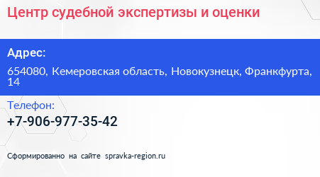 Центр судебной экспертизы и оценки по адресу 654080, Кемеровская область, Новокузнецк, Франкфурта, 14 в дальнейшем Организация, размещена в следующих категориях: