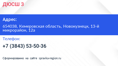 ДЮСШ №3 по адресу 654038, Кемеровская область, Новокузнецк, 13-й микрорайон, 12а в дальнейшем Организация, размещена в следующих категориях: