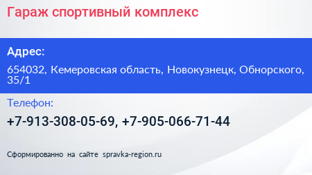 Гараж, спортивный комплекс по адресу 654032, Кемеровская область, Новокузнецк, Обнорского, 35/1 в дальнейшем Организация, размещена в следующих категориях: