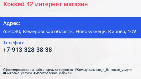 Хоккей 42, интернет-магазин по адресу 654080, Кемеровская область, Новокузнецк, Кирова, 109 в дальнейшем Организация, размещена в следующих категориях: