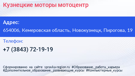 Кузнецкие моторы, мотоцентр по адресу 654006, Кемеровская область, Новокузнецк, Пирогова, 19 в дальнейшем Организация, размещена в следующих категориях: