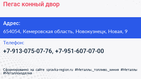 Пегас, конный двор по адресу 654054, Кемеровская область, Новокузнецк, Новая, 9 в дальнейшем Организация, размещена в следующих категориях: