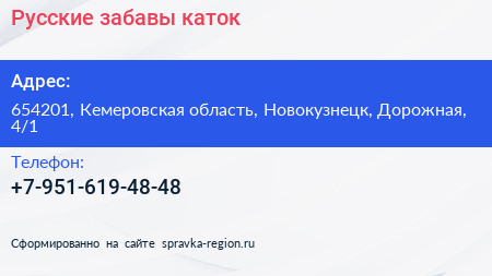 Русские забавы, каток по адресу 654201, Кемеровская область, Новокузнецк, Дорожная, 4/1 в дальнейшем Организация, размещена в следующих категориях: