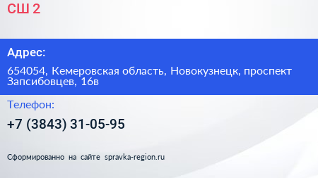 СШ №2 по адресу 654054, Кемеровская область, Новокузнецк, проспект Запсибовцев, 16в в дальнейшем Организация, размещена в следующих категориях: