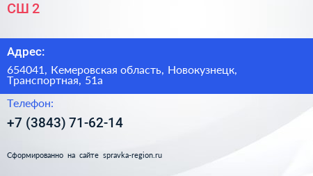 СШ №2 по адресу 654041, Кемеровская область, Новокузнецк, Транспортная, 51а в дальнейшем Организация, размещена в следующих категориях:
