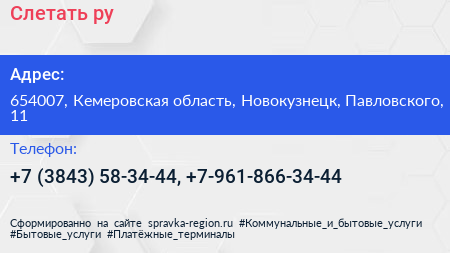 Слетать.ру по адресу 654007, Кемеровская область, Новокузнецк, Павловского, 11 в дальнейшем Организация, размещена в следующих категориях: