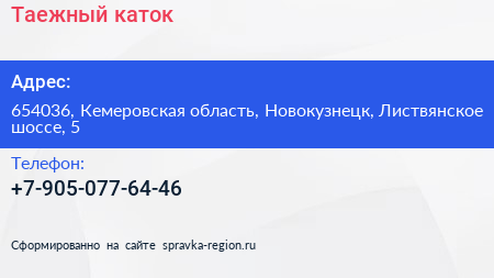 Таежный, каток по адресу 654036, Кемеровская область, Новокузнецк, Листвянское шоссе, 5 в дальнейшем Организация, размещена в следующих категориях: