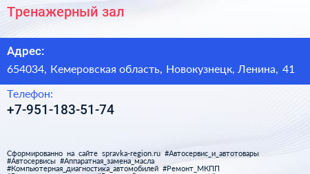 Тренажерный зал по адресу 654034, Кемеровская область, Новокузнецк, Ленина, 41 в дальнейшем Организация, размещена в следующих категориях: