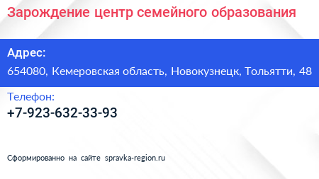 Зарождение, центр семейного образования по адресу 654080, Кемеровская область, Новокузнецк, Тольятти, 48 в дальнейшем Организация, размещена в следующих категориях: