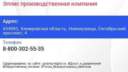 Элпис, производственная компания по адресу 654041, Кемеровская область, Новокузнецк, Октябрьский проспект, 4 в дальнейшем Организация, размещена в следующих категориях:
