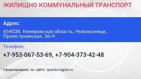 ЖИЛИЩНО-КОММУНАЛЬНЫЙ ТРАНСПОРТ по адресу 654038, Кемеровская область, Новокузнецк, Промстроевская, 36/4 в дальнейшем Организация, размещена в следующих категориях: