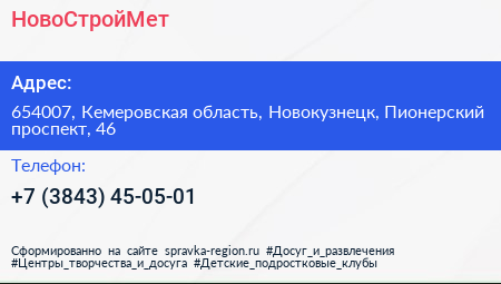 НовоСтройМет по адресу 654007, Кемеровская область, Новокузнецк, Пионерский проспект, 46 в дальнейшем Организация, размещена в следующих категориях:
