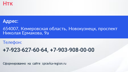 Нтк по адресу 654007, Кемеровская область, Новокузнецк, проспект Николая Ермакова, 9а в дальнейшем Организация, размещена в следующих категориях: