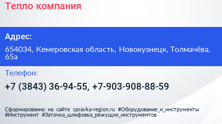 Тепло, компания по адресу 654034, Кемеровская область, Новокузнецк, Толмачёва, 65а в дальнейшем Организация, размещена в следующих категориях: