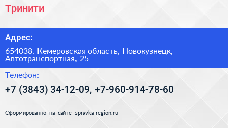 Тринити по адресу 654038, Кемеровская область, Новокузнецк, Автотранспортная, 25 в дальнейшем Организация, размещена в следующих категориях: