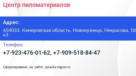 Центр пиломатериалов по адресу 654033, Кемеровская область, Новокузнецк, Некрасова, 18 к3 в дальнейшем Организация, размещена в следующих категориях: