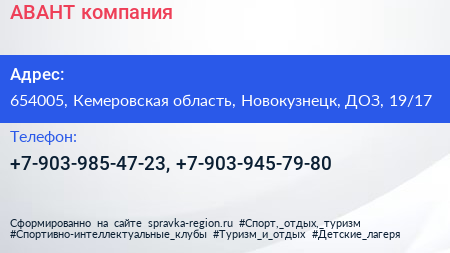 АВАНТ, компания по адресу 654005, Кемеровская область, Новокузнецк, ДОЗ, 19/17 в дальнейшем Организация, размещена в следующих категориях: