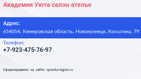 Академия Уюта, салон-ателье по адресу 654054, Кемеровская область, Новокузнецк, Косыгина, 79 в дальнейшем Организация, размещена в следующих категориях: