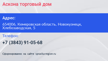 Аскона, торговый дом по адресу 654006, Кемеровская область, Новокузнецк, Хлебозаводская, 5 в дальнейшем Организация, размещена в следующих категориях: