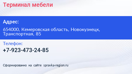 Терминал мебели по адресу 654000, Кемеровская область, Новокузнецк, Транспортная, 85 в дальнейшем Организация, размещена в следующих категориях: