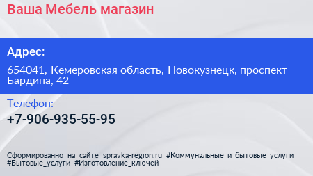 Ваша Мебель, магазин по адресу 654041, Кемеровская область, Новокузнецк, проспект Бардина, 42 в дальнейшем Организация, размещена в следующих категориях: