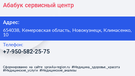 Абабук, сервисный центр по адресу 654038, Кемеровская область, Новокузнецк, Климасенко, 10 в дальнейшем Организация, размещена в следующих категориях: