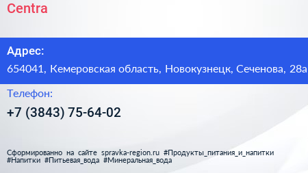 Centra по адресу 654041, Кемеровская область, Новокузнецк, Сеченова, 28а в дальнейшем Организация, размещена в следующих категориях: