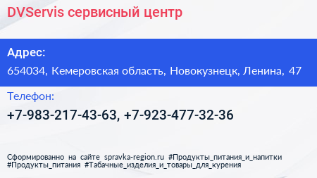 DVServis, сервисный центр по адресу 654034, Кемеровская область, Новокузнецк, Ленина, 47 в дальнейшем Организация, размещена в следующих категориях: