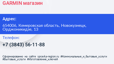 GARMIN, магазин по адресу 654006, Кемеровская область, Новокузнецк, Орджоникидзе, 13 в дальнейшем Организация, размещена в следующих категориях: