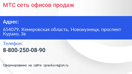 МТС, сеть офисов продаж по адресу 654079, Кемеровская область, Новокузнецк, проспект Курако, 3в в дальнейшем Организация, размещена в следующих категориях: