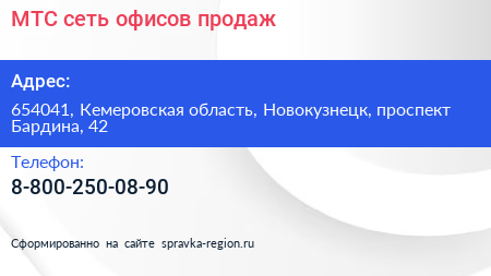 МТС, сеть офисов продаж по адресу 654041, Кемеровская область, Новокузнецк, проспект Бардина, 42 в дальнейшем Организация, размещена в следующих категориях: