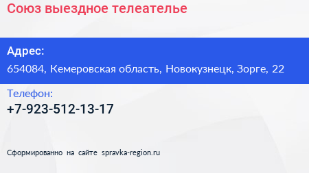 Союз, выездное телеателье по адресу 654084, Кемеровская область, Новокузнецк, Зорге, 22 в дальнейшем Организация, размещена в следующих категориях: