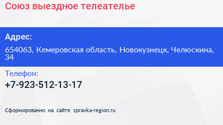 Союз, выездное телеателье по адресу 654063, Кемеровская область, Новокузнецк, Челюскина, 34 в дальнейшем Организация, размещена в следующих категориях: