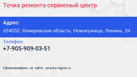 Точка ремонта, сервисный центр по адресу 654032, Кемеровская область, Новокузнецк, Ленина, 24 в дальнейшем Организация, размещена в следующих категориях:
