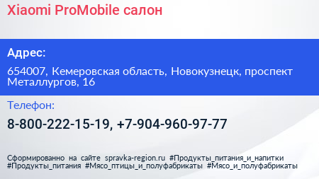 Xiaomi-ProMobile, салон по адресу 654007, Кемеровская область, Новокузнецк, проспект Металлургов, 16 в дальнейшем Организация, размещена в следующих категориях: