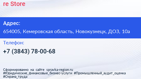 re:Store по адресу 654005, Кемеровская область, Новокузнецк, ДОЗ, 10а в дальнейшем Организация, размещена в следующих категориях: