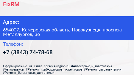 FixRM по адресу 654007, Кемеровская область, Новокузнецк, проспект Металлургов, 36 в дальнейшем Организация, размещена в следующих категориях: