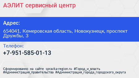 АЭЛИТ, сервисный центр по адресу 654041, Кемеровская область, Новокузнецк, проспект Дружбы, 3 в дальнейшем Организация, размещена в следующих категориях: