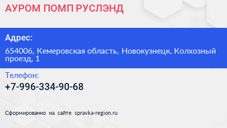 АУРОМ ПОМП РУСЛЭНД по адресу 654006, Кемеровская область, Новокузнецк, Колхозный проезд, 1 в дальнейшем Организация, размещена в следующих категориях: