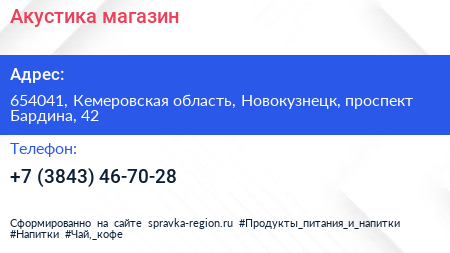 Акустика, магазин по адресу 654041, Кемеровская область, Новокузнецк, проспект Бардина, 42 в дальнейшем Организация, размещена в следующих категориях:
