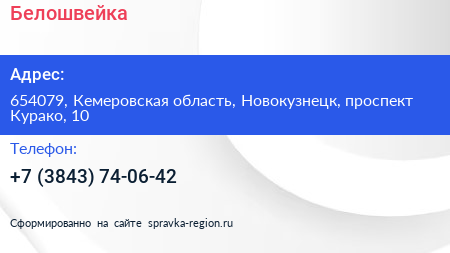 Белошвейка по адресу 654079, Кемеровская область, Новокузнецк, проспект Курако, 10 в дальнейшем Организация, размещена в следующих категориях: