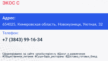 ЭКОС-С по адресу 654025, Кемеровская область, Новокузнецк, Уютная, 32 в дальнейшем Организация, размещена в следующих категориях: