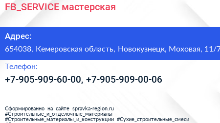FB_SERVICE, мастерская по адресу 654038, Кемеровская область, Новокузнецк, Моховая, 11/7 в дальнейшем Организация, размещена в следующих категориях: