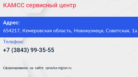 КАМСС, сервисный центр по адресу 654217, Кемеровская область, Новокузнецк, Советская, 1а в дальнейшем Организация, размещена в следующих категориях: