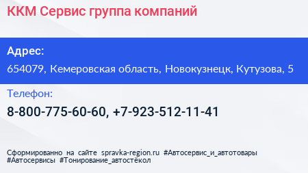 ККМ-Сервис, группа компаний по адресу 654079, Кемеровская область, Новокузнецк, Кутузова, 5 в дальнейшем Организация, размещена в следующих категориях: