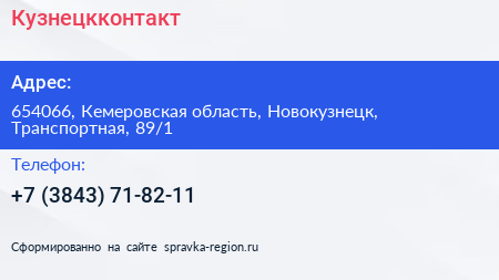 Кузнецкконтакт по адресу 654066, Кемеровская область, Новокузнецк, Транспортная, 89/1 в дальнейшем Организация, размещена в следующих категориях: