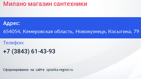 Милано, магазин сантехники по адресу 654054, Кемеровская область, Новокузнецк, Косыгина, 79 в дальнейшем Организация, размещена в следующих категориях: